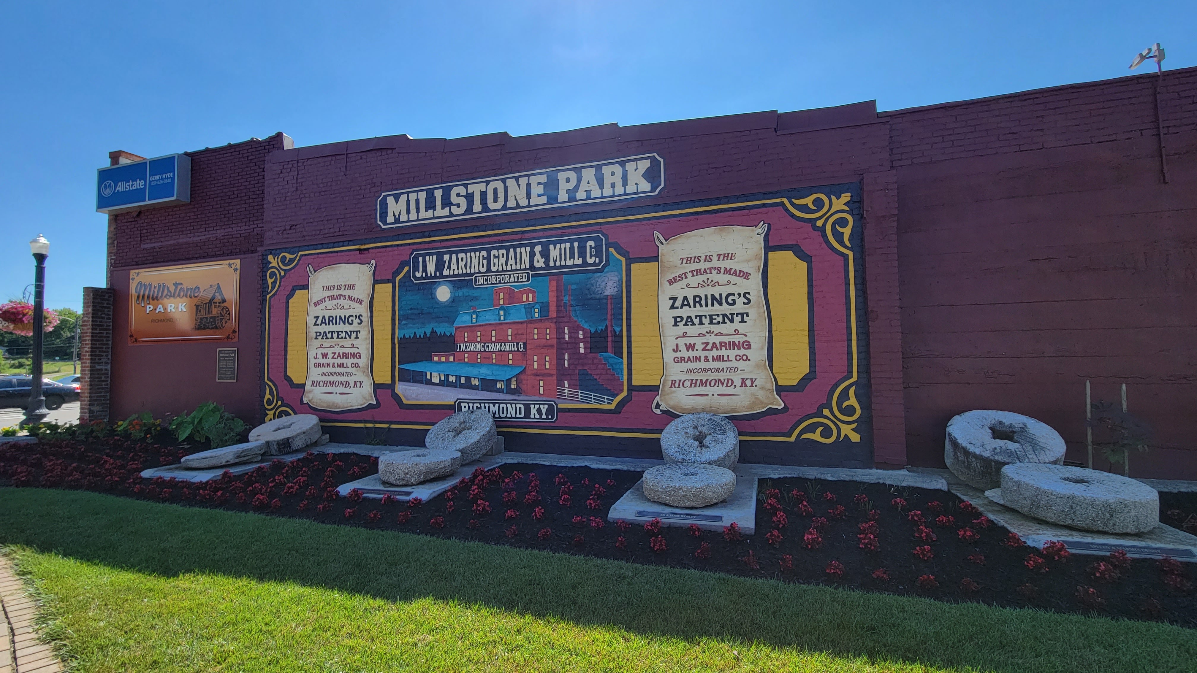 During the last four years, the Richmond Chamber of commerce has been adding and beautifying several parts of downtown and creating development zones. MillStone Park is part of the arts and tourism zone downtown and is the cornerstone of the Millstone Festival that began in 2021. It is on the site of the old Zaring Mill that sat along Dreaming Creek which no longer flows above ground downtown.