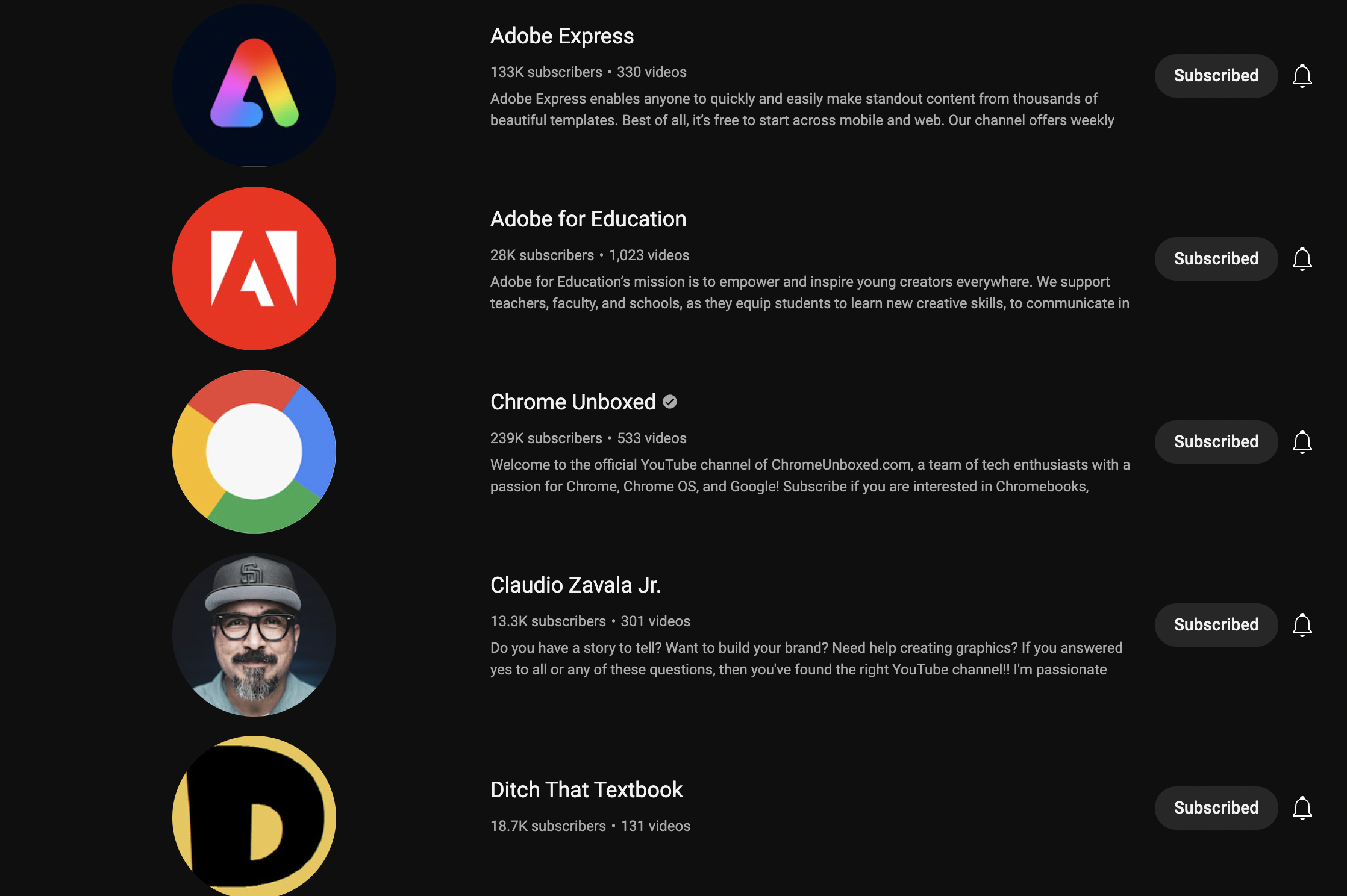- Adobe For Education: a channel focused on elements of Adobe in a classroom and different ways to apply the Creative Cloud to student/teacher workflows.