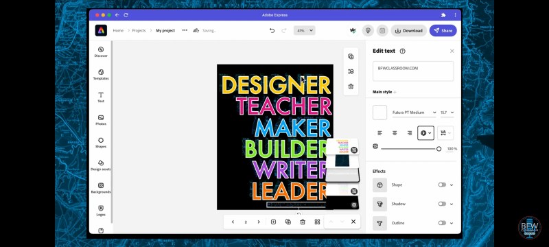 - Finally, if you are using a list of words, align left or right. Making it centered will cover the second layer and lose the effect.