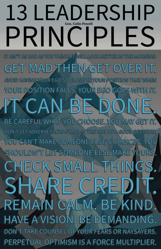 This is part of a 4-part leadership series focusing on the 13 Leadership Principles developed by Sec. Colin Powell. You can download a free poster with all 13 listed or read the other posts by following the link. Or read his book on leadership. (Amazon)