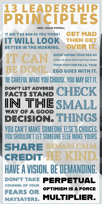 This is part of a 4-part leadership series focusing on the 13 Leadership Principles developed by Sec. Colin Powell. You can download a free poster with all 13 listed or read the other posts by following the link. Or read his book on leadership. (Amazon)